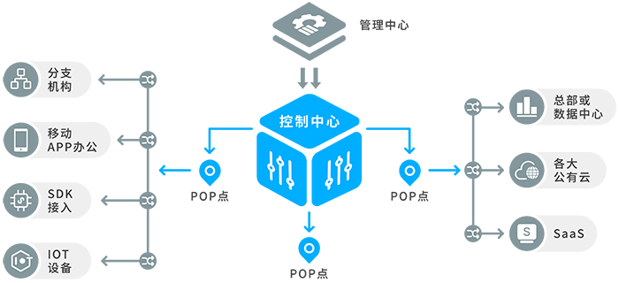 將SD-WAN技術應用到廣域網場景中,有效解決 傳統廣域網運營成本高、網絡質量不穩定等 問題。唯一的自研WCloud SD-WAN產品平臺, 滿足多點組網、跨地域訪問加速、穩定視頻 會議等多個應用場景需求。